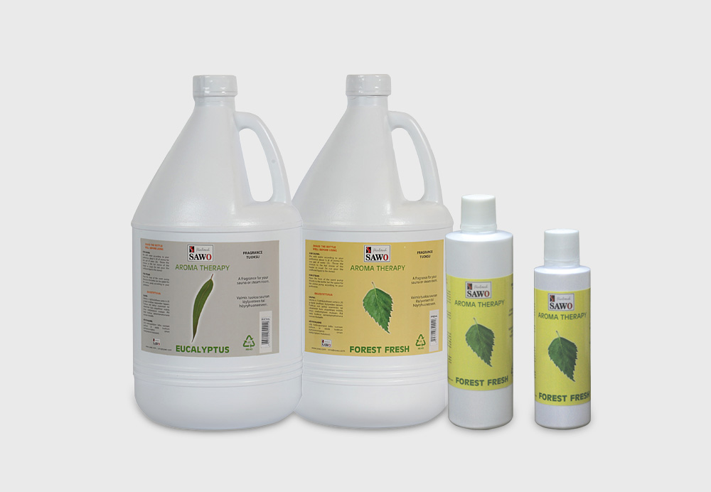 SAWO предлагает различные ароматы: Forest Fresh («Свежий лес») и Eucalyptus («Эвкалипт»). Эти масла для ароматерапии благоприятно воздействуют на дыхательную систему. Каждый из ароматов доступен в объемах по 5 л, 500 мл и 250 мл.